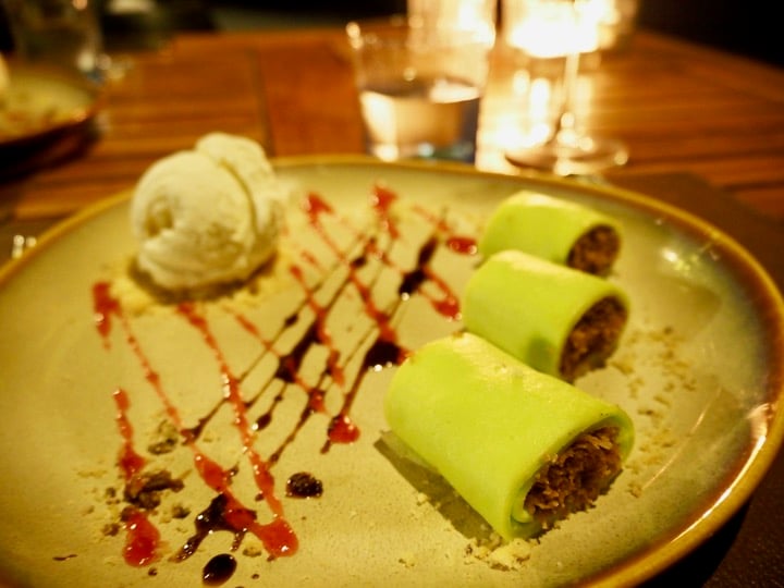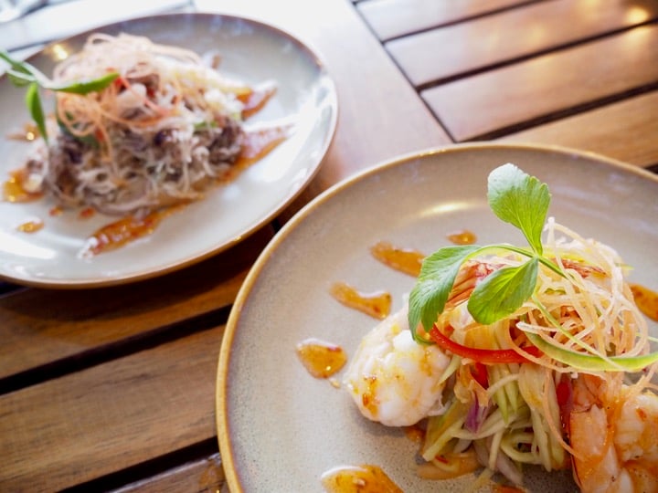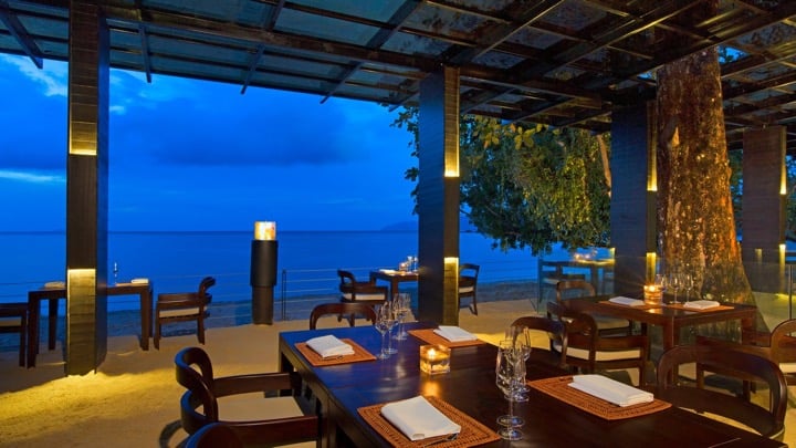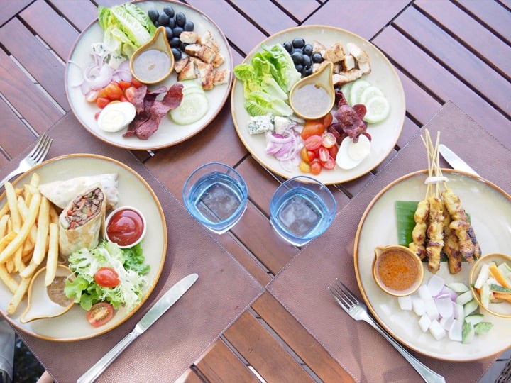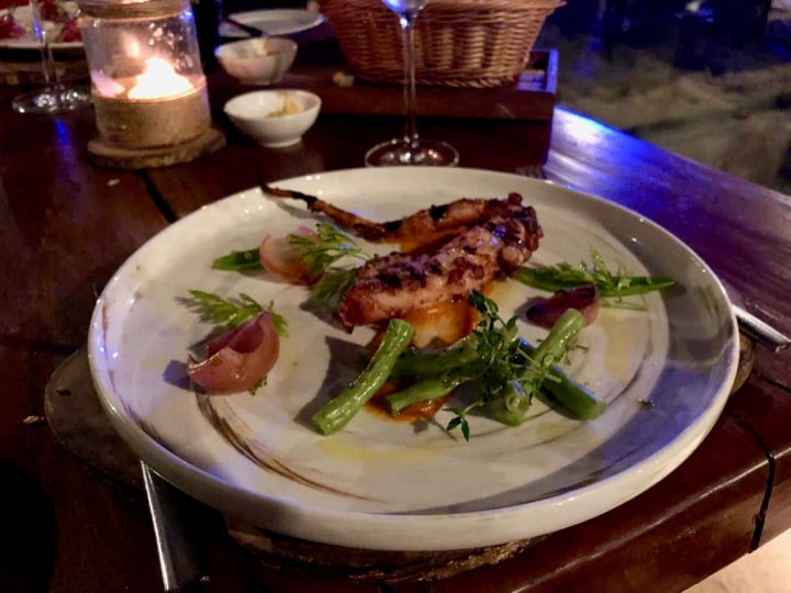 Open only in the evening, Jala is the place to go for seafood lovers. For our first dinner here, we discovered a gorgeous open kitchen where chefs prepare the catch of the day, allowing diners to choose their own fresh fish, cooking method, and side dishes. I immediately took to their warm and friendly approach! The menu offers a selection of Asian and Western-style dishes, all in a marvelous seaside environment: we sat at a solid wood table with our feet in the sand and got to watch the sunset over the bay. In a word, it was perfect!