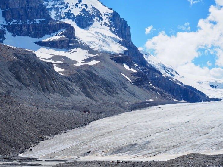 Get ready: today you're going to drive on one of the world's most beautiful roads, the Icefields Parkway! 230 km (143 mi.) of pure bliss through exceptional countryside! Here we're in the heart of the Rockies, with mountains looming on either side. There are plenty of things to see (including waterfalls and viewing points). The area around Athabasca Glacier is a must-see. It's easily accessible thanks to its proximity to the road. You can plan an organized tour to walk across the glacier if you'd like. Farther along, don't forget to make a stop at the famous Bow and Peyto lakes.