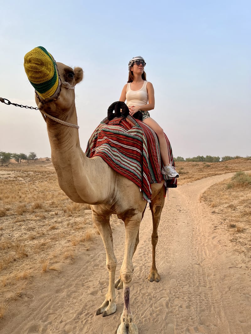 In the heart of the desert, horses and camels play a central role in Middle Eastern culture. The resort's equestrian center offers lessons and adventures for riders of all levels, allowing everyone to immerse themselves in this millennia-old tradition. During a morning ride, we had the chance to explore the vast desert expanses on horseback, a serene experience. Later, we explored the dunes on camelback at sunset, an equally fascinating moment that plunged us into the Bedouin world. The highlight was our arrival at the top of a dune where we enjoyed a glass of prosecco on a majlis specially set up for us, admiring the golden hues of the desert in a romantic and unforgettable setting.