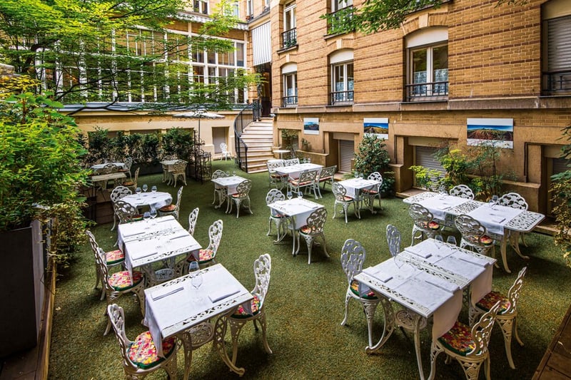 Les Climats, ensconced in the unusual setting of the former Maison des Dames des Postes, Télégraphes et Téléphones, flaunts a magnificent Art Nouveau style. The restaurant maintains its architectural integrity with a beautiful ancient mosaic flooring, floral arch motifs adorning the ceiling, unique brass light fixtures, and stained glass. The restaurant's ambiance is as much a work of art as the delicious cuisine served on the tables, adding a sense of grandeur to your dining experience.