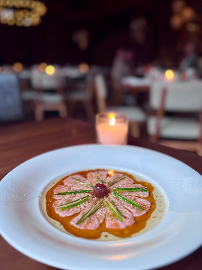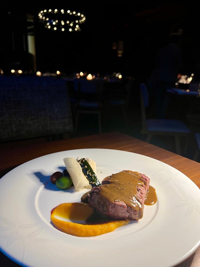We then chose a selection of Nobu's signature dishes while indulging in a few creations that particularly caught our attention. The parade of flavors began beautifully with Salmon Karashi Sumiso, followed by salmon nigiri and tuna maki, not forgetting the iconic Black Cod, tender and flavorful, reminiscent of authentic Japanese cuisine. The Angus beef fillet, served with a wasabi pepper sauce, was a true delight. As for the lamb dumplings with fruits, they perfectly embodied the fusion of local ingredients and the finesse of Japanese technique, offering a subtle marriage of textures and flavors that truly captivated us.