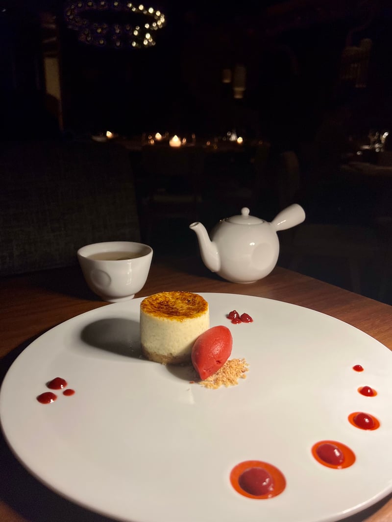 To crown this meal, the desserts, inspired by Japanese influences, provided a beautiful conclusion. We indulged in Nobu's signature cheesecake, blending exquisite creaminess with the freshness of a wasabi sorbet and raspberry jelly, as well as a delicately tangy yuzu tart, accompanied by basil sorbet. As for the ambiance, we were charmed by the perfectly calibrated music: present enough to create a vibrant atmosphere while allowing for pleasant conversations. The lively and bustling room added to the energy of the place, while the dancers' performance, which entertained us during dessert, brought a festive and elegant touch, beautifully closing our evening.