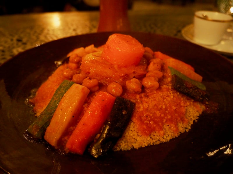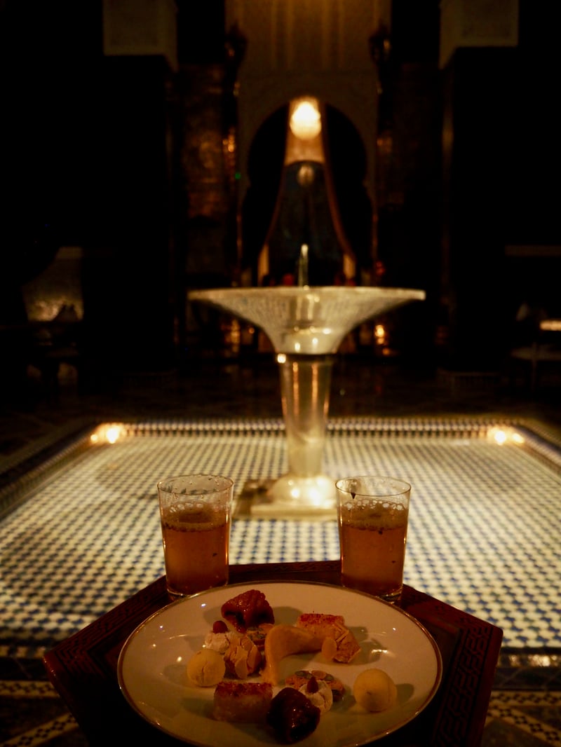 Here, guests can enjoy top-notch, innovative Moroccan cuisine. Our evening began with an assortment of Moroccan salads, followed by lamb with seven-vegetable couscous and an orange blossom pastilla for dessert. The setting is simply sublime, but the real show-stopper is the chance to enjoy Moroccan mint tea with local pastries in the courtyard—a truly unique and romantic way to top off a superb dinner!