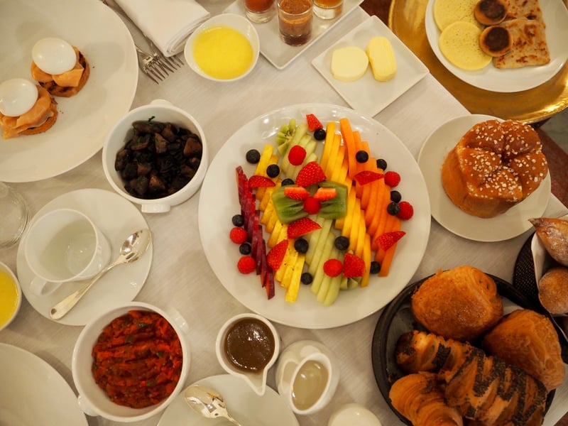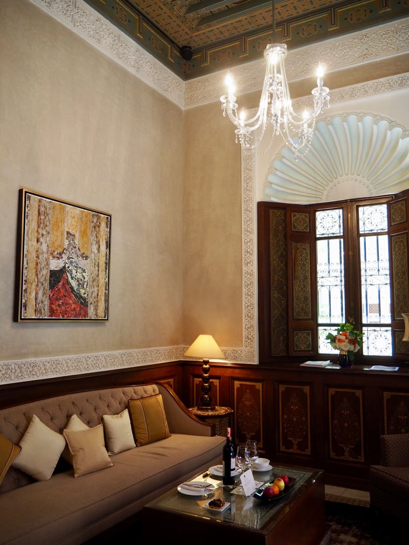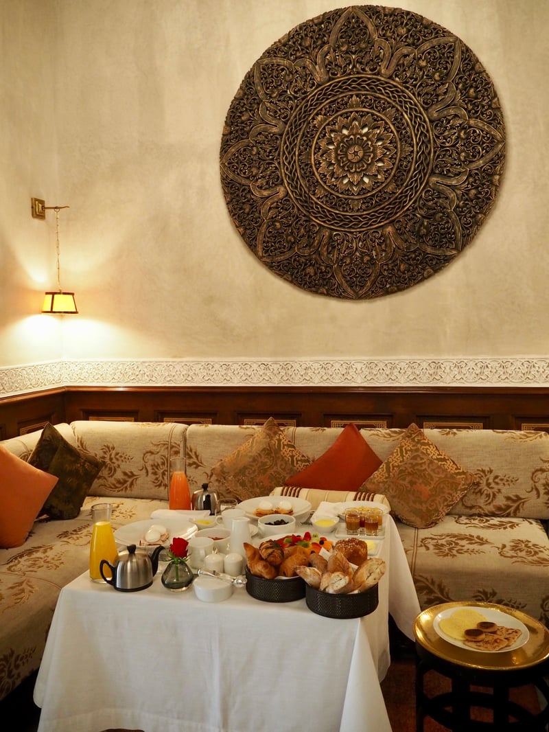 The restaurant La Table is the place to go at any time of day; it opens for breakfast and continues its service during lunch, when you can eat under the shade of century-old olive trees, then onto dinner, which is served in a subdued ambience. We opted to have our breakfast in the comfort of our own riad, and I have to say that months later, I still remember it very vividly; our delicious breakfast featured several French products and pastries (including a brioche that was to die for!), but also classic dishes such as eggs (we selected the eggs Benedict) as well as several Moroccan treats and absolutely divine crepes!