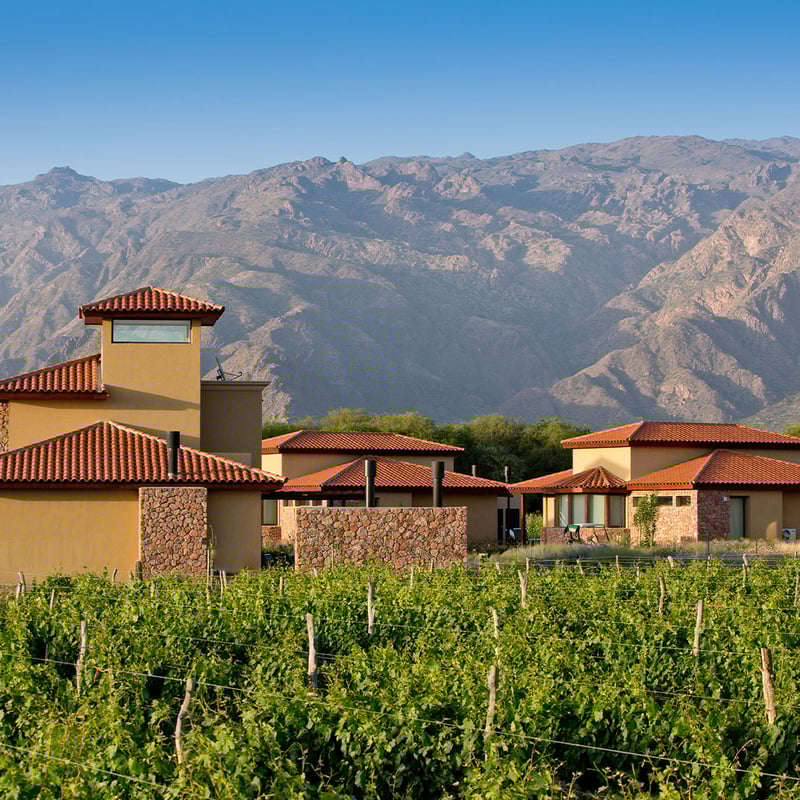 Twelve rooms occupy a 1,360-acre wine estate where the Andes rise sharply behind endless vineyard rows. Grace Cafayate splits the difference between rustic Patagonian estancia and sleek Porteño boutique, with a spa that incorporates grapes from the surrounding vines into its treatments. One of Argentina's most prestigious championship golf courses anchors the property, while the restaurant applies refined contemporary technique to regional cuisine.