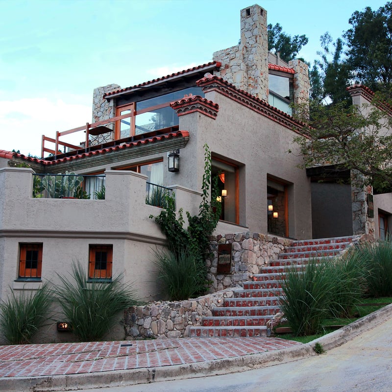 Spanish tile roofs and stucco walls give this ten-room family property the air of an Andalucian manor, while indigenous textiles and local craftsmanship fill the interiors with regional character. Eight rooms feature private jacuzzis beside floor-to-ceiling windows framing the Tres Cerritos foothills. A garden pool, sun-drenched solarium, and quiet residential setting suit travelers seeking intimacy over scale. Adults and children ten and older only.