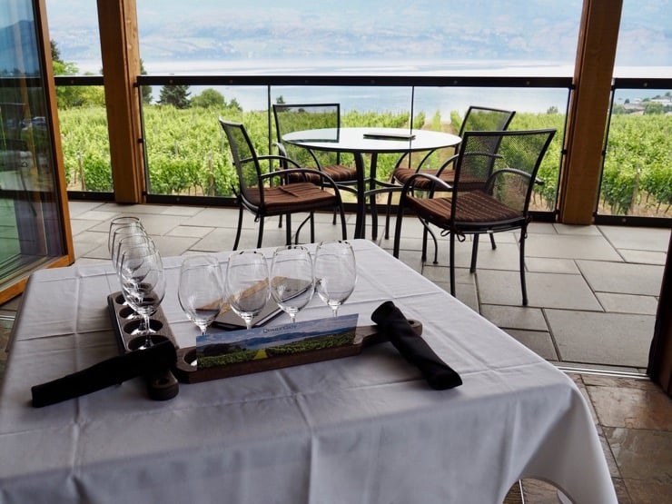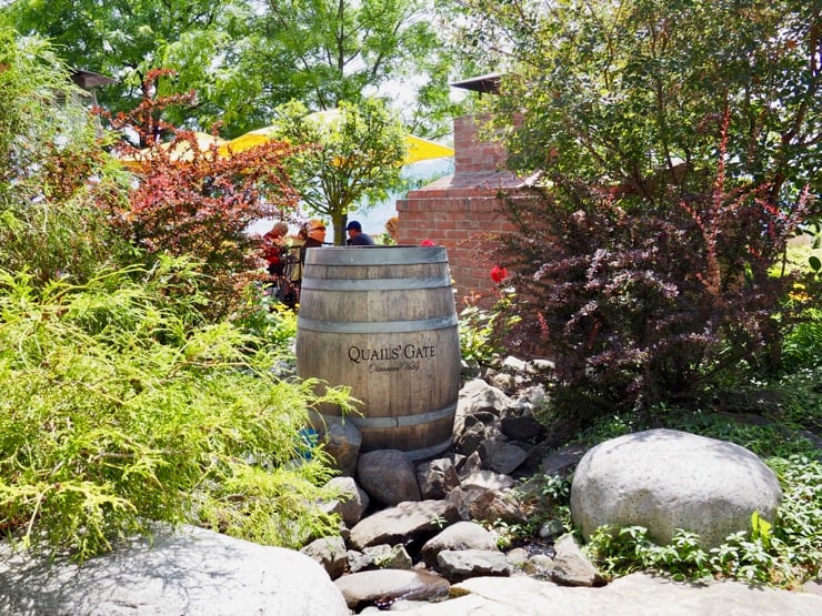 We explored our first vineyard, Quail's Gate, in the late morning. It's one of the most frequented and best-known winemakers in the valley. At their restaurant Old Vines, one of the best in the region, we enjoyed our lunch in the outside seating area, overlooking the grapevines and the lake in the distance.