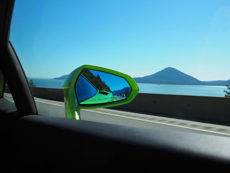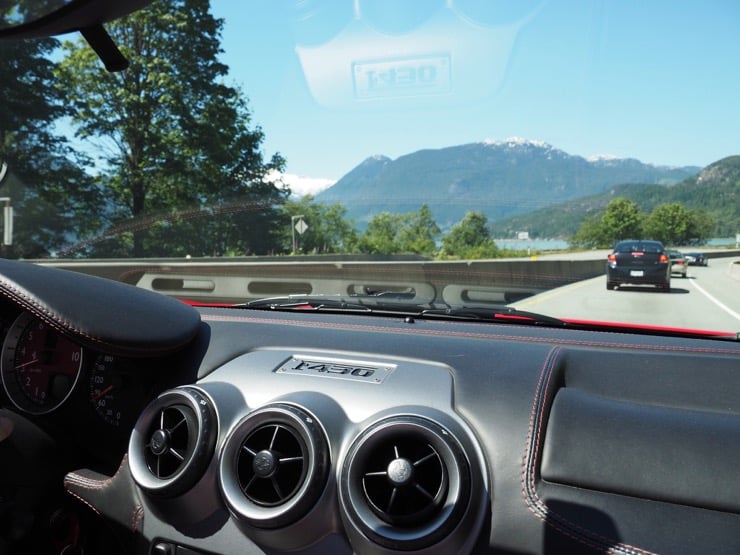 We leave the city at a moderate speed to warm up the vehicle, find our way to the Sea to Sky Highway, and off we go! Words can't describe what we're feeling: the acceleration thrusts us back in our seats, and the vehicle's power is unbelievable even when compared to (for example) a Porsche! I love the car's handling; we feel “glued” to the ground, and as each curve follows the last our enjoyment never wanes.