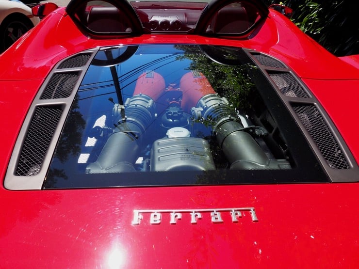 After about twenty minutes, we make our first stop. We catch our breath, exchange a few words with the other drivers (who, like us, are grinning from ear to ear), and then we're behind the wheel again in a Ferrari F430 Spider! With its beautiful red exterior, it embodies what I think many of you would call THE quintessential sports car! This convertible drives very differently, and is much more rigid and sporty. We feel like we're in a go-kart, but one with 490 hp! Hair blowing in the wind, we continue down the road, which just gets more and more beautiful! Don't forget, much of the pleasure comes from this exceptional highway and its view of the sea (between accelerations, we can take a few quick glances!), and it really is a treat!