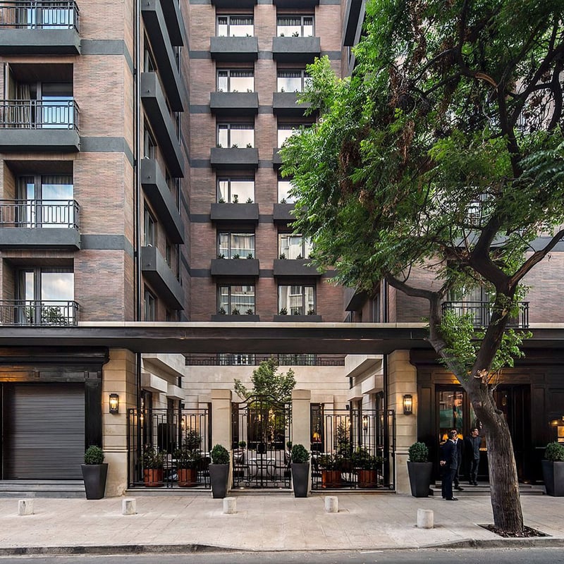 South America's sole Ritz-Carlton occupies a prime position in Santiago's El Golf district, its brick-and-glass facade giving way to English-manor interiors of wood paneling, chandeliers, and gilt-framed oils. The fifth-floor spa spans 7,440 square feet with an outdoor terrace overlooking the Andes, while Estró restaurant showcases responsibly sourced Chilean seafood. Marble bathrooms with Asprey amenities and optional bath butler service complete the old-world refinement.