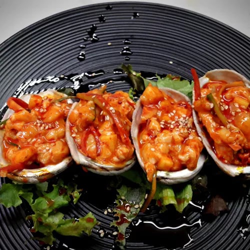 Behind gated walls in Ensenada's port district, chefs Benito Molina and Solange Muris have built a seafood destination around their signature arroz de mar, a guajillo-laced rice brimming with the day's catch. The ornate carved-wood bar anchors spacious dining rooms that open onto a courtyard, while Valle de Guadalupe wines fill the glass. Dessert brings a daily crème brûlée, perfumed with fig leaves from the garden.