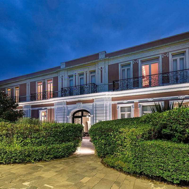 A listed 19th-century hacienda with ornate ironwork and peach-colored façades, this boutique retreat sits steps from Bosque de Tlalpan, offering rare access to urban forest trails while remaining within reach of the capital's cultural landmarks. Suites feature kitchens, living areas, and original works by Mexican artists; an orange tree-fringed patio provides an atmospheric setting for evening cocktails. Ideal for families and travelers with pets seeking residential calm.