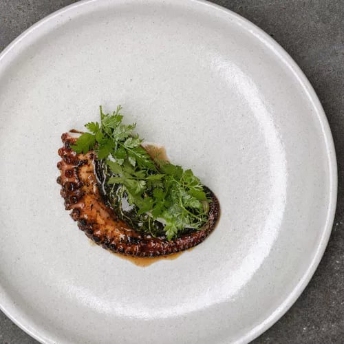 Chef Jorge Vallejo holds two Michelin stars at this Polanco address, where a discreet facade opens onto a chic, unfussy dining room. His constantly evolving tasting menu mines Mexican terroir with unexpected inflections—crab with blue corn tostada and pipian verde brightened by galangal and makrut lime, or a finale pairing crème fraîche sorbet with caviar and Melipona honey. Refined, inventive, impeccably balanced.