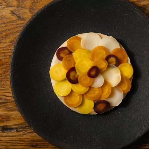 A greenhouse structure on Lomita winery's grounds sets the stage for chef Sheyla Alvarado's vegetable-forward tasting menus, earning both a Michelin star and Green Star for sustainability. Ingredients arrive from the estate's own farm, appearing in dishes like blue corn sope layered with carrot purée, smoked shrimp, and bougainvillea. Counter seating offers an intimate view of the open kitchen's precise choreography.