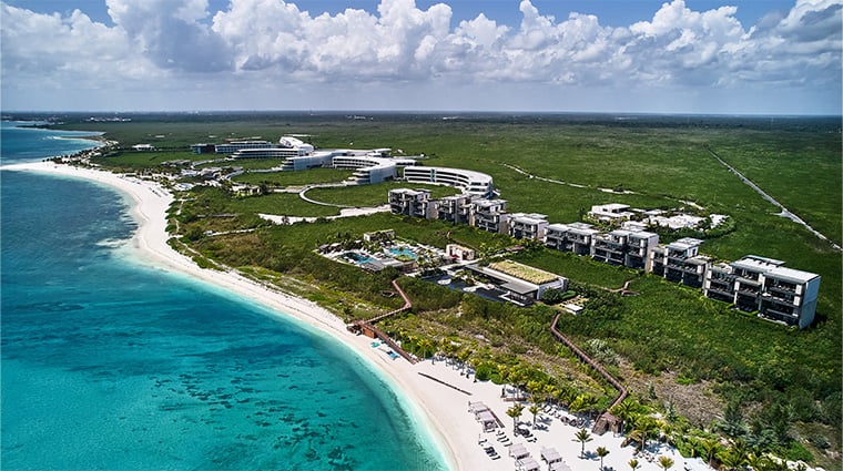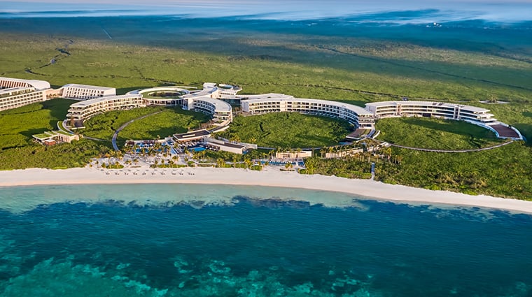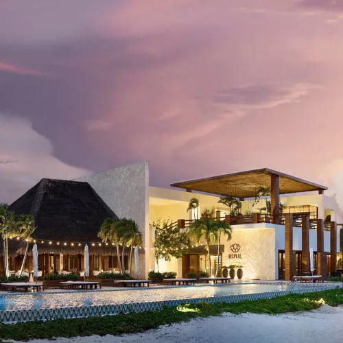 Palmaïa spreads 234 suites along Playa del Carmen's beachfront, each designed in contemporary-indigenous style with ocean views or swim-out pool access. The Atlantis Spa draws on Maya and Ayurvedic traditions, offering shamanic rituals and astrology sessions alongside conventional treatments. Dining runs vegan by default across Japanese, Mediterranean, and elevated Mexican kitchens. Separate adults-only zones and family facilities make it equally suited to couples seeking spiritual immersion and multigenerational groups.