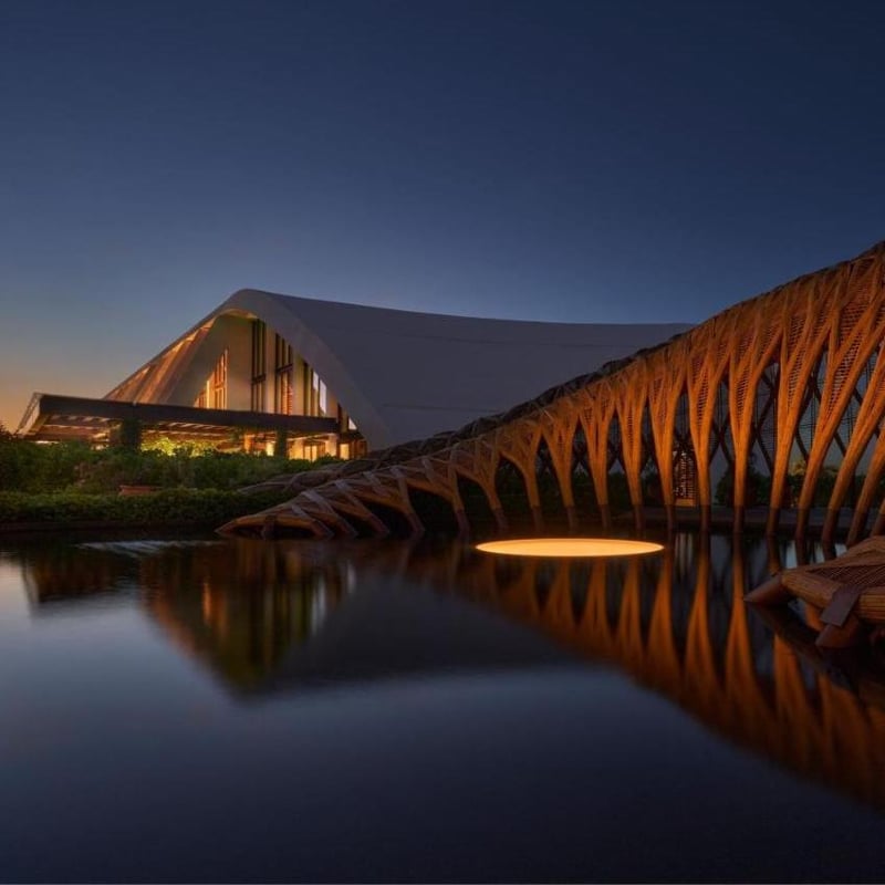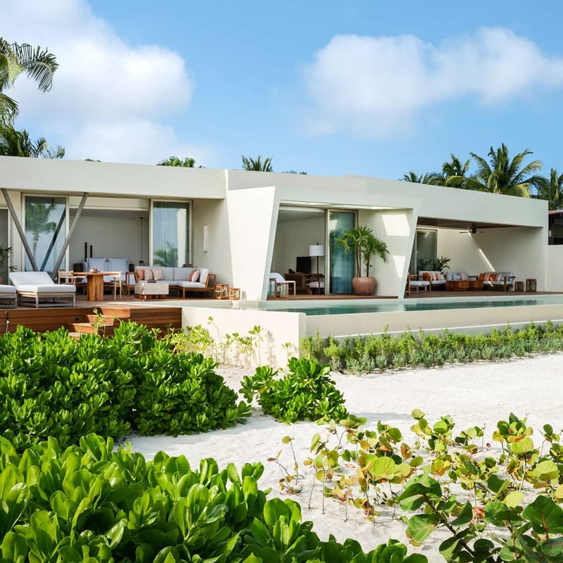 Edmonds International's wave-shaped architecture ripples outward from a central bamboo yoga deck, with cascading greenery evoking the region's cenote sinkholes throughout the 181 rooms. The lagoon-style pool channels French Riviera ease, while chefs Paco Ruano at KI'IS and Tomás Bermúdez at SO'OL anchor five dining venues. A spa with treatment rooms named for white flowers completes Ian Schrager's vision of barefoot Mexican sophistication.