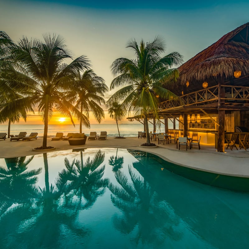 Forty-one thatched-roof villas disappear into coastal jungle, each with a heated plunge pool and handmade hammock swaying on private patios. A resident Mayan shaman performs copal blessings and crafts treatments in the spa's Herbal Healing Kitchen, while a soap concierge delivers hand-sliced organic bars in rose and watermelon. Thursday chef's tables pour Mexican wines; Friday barbacoa moves to the sand. Adults only, with rare tequilas at the bar.