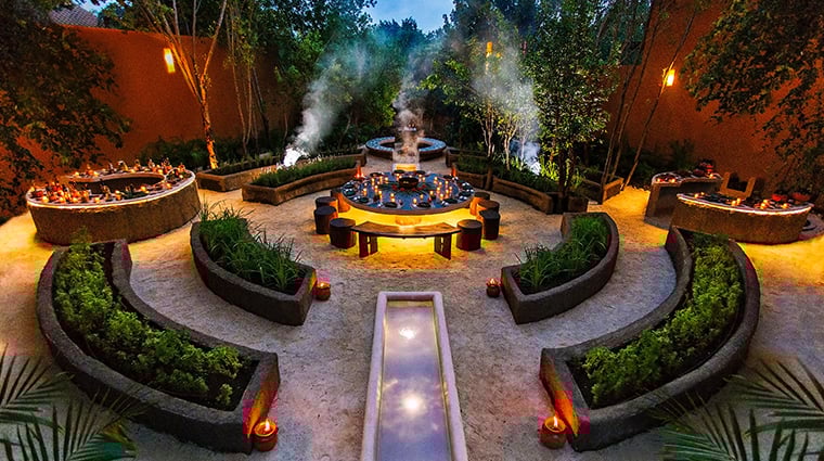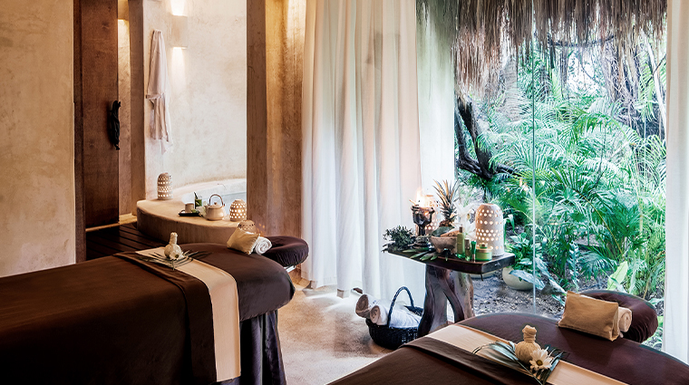 Ancient rock formations and swimmable cenotes form the backdrop for Atlantis Spa, where indigenous healing traditions guide every treatment. The signature Aia of Life ritual pairs two therapists in synchronized four-handed massage, while weekly temazcal ceremonies draw on generational Maya knowledge. Jungle fire ceremonies led by shamans and treatments based on the Book of the Nine Paths complete this immersion in ancestral wellness philosophy.