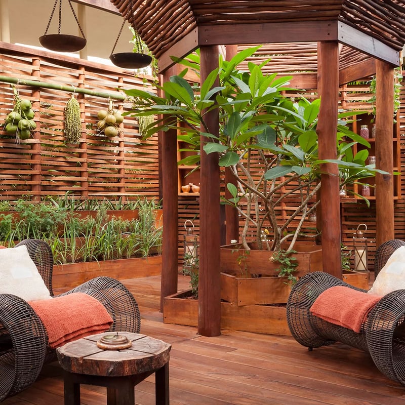 Beneath a traditional palapa roof overlooking a cenote, therapists at this Forbes-awarded sanctuary prepare bespoke treatments in a Mayan organic kitchen—muddling local herbs, honey, and cacao into scrubs and balms. Each session begins with an ancestral energy cleansing ritual. The wellness circuit includes infrared sauna, ice chamber, and cold plunge, while the Temazcal sweat lodge delivers ancient purification ceremonies.