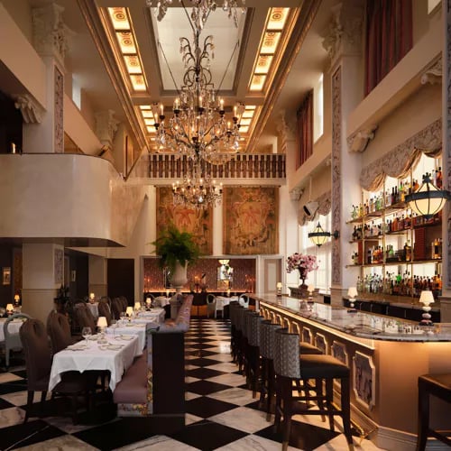 Adolphus Busch's 1912 beaux-arts monument rises 22 stories over Commerce Street, its German castle-inspired façade housing original artworks and marble floors revealed during a meticulous 2016 restoration. The French Room dazzles with Murano chandeliers and gilded Louis XVI chairs, while a heated rooftop pool stays open until midnight with cabana service and downtown views. The 5,000-square-foot spa completes the experience for travelers seeking historic grandeur with contemporary polish.