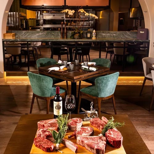 Dark wood tables and moody lighting set the scene at this American steakhouse built for convivial dining. The menu rewards groups willing to share, from wagyu tartare and a regional spin on oysters Rockefeller to impeccably seared cuts with sides of creamed spinach and corn pudding. Finish with key lime pie or a warm skillet chocolate chip cookie crowned with vanilla ice cream.
