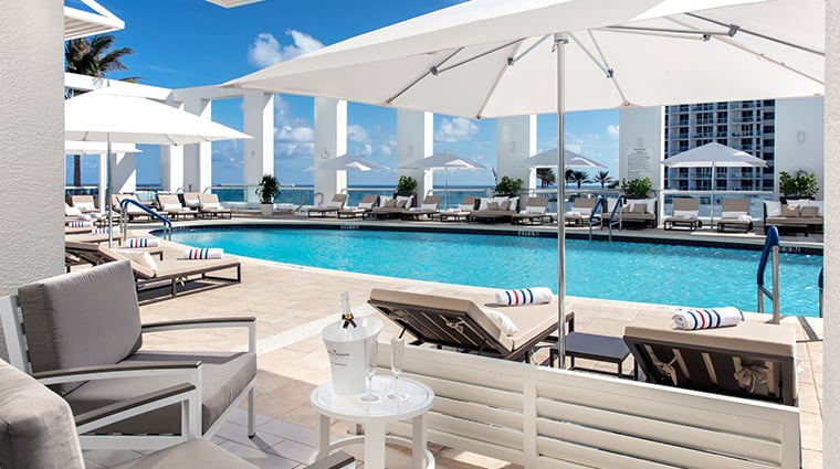 A glass-bottomed pool suspended above the lobby sets the tone at this beachfront W property, where a jellyfish aquarium adds unexpected marine theatre to the public spaces. Ocean-facing rooms open onto Fort Lauderdale's celebratory strip, attracting a crowd that skews young and socially inclined. The atmosphere runs hip and indulgent—better suited to couples seeking weekend energy than families with early bedtimes.
