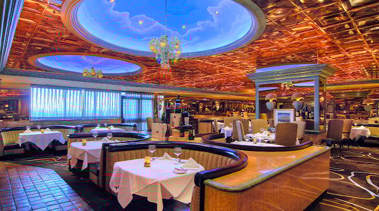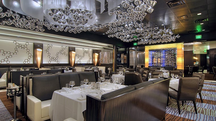 A 1,100-gallon saltwater aquarium anchors the bar at this reimagined steakhouse, where a multi-million-dollar renovation has traded kitsch for the polished glamour of a Shanghai high-rise. The kitchen handles California abalone with precision—breaded, tender-chewy, brightened with lemon—while tableside Caesar and spinach salads add theater. Behind the bar, mixologists fluent in a hundred recipes shake signature creations like the raspberry-spiked Moulin Rouge.