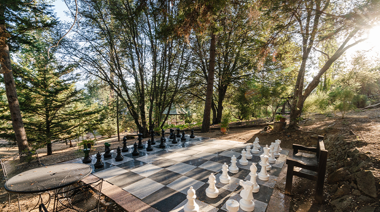 Rising from California's golden foothills fourteen miles from Yosemite, this Provençal-inspired château spreads across nine acres of manicured gardens dotted with fountains, a hidden gazebo, and a life-sized chessboard. Butlers appear at the press of discreet call buttons stationed throughout the grounds. The Elderberry House restaurant delivers nouveau California cuisine matched with regional wines, while guided nature hikes extend the wilderness experience beyond the park's granite domes.