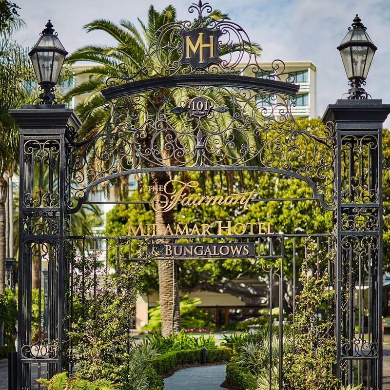 The century-old Fairmont Miramar occupies five Pacific-facing acres in Santa Monica, anchored by a towering fig tree and 31 freestanding bungalows scattered through lush gardens—the city's most sought-after accommodations. A shuttle ferries guests to the private beach club, while on-site diversions include the eight-seat Soko sushi counter in the lobby, where chef Masa Shimakawa plates omakase with sake pairings, FIG's legendary happy hour, and Exhale Spa's Turkish bath and signature facial massages.