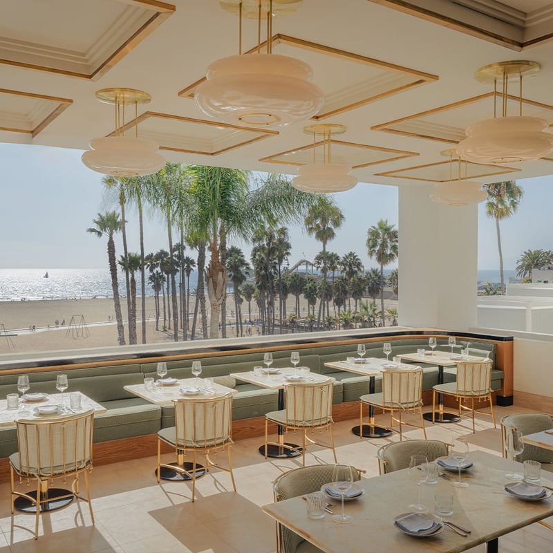 Michael S. Smith's Cape Cod-inspired design brings East Coast elegance to Santa Monica's shoreline, with original artworks by Hockney and Lichtenstein anchoring interiors rich in marine heritage. Ocean-view suites—some with working fireplaces—open directly onto the sand, while 1 Pico serves seasonal California cuisine beneath antique boat hulls and art nouveau lanterns. The lobby lounge draws celebrity patrons and industry insiders for live music and cocktails, cementing its status as a local institution beyond the typical resort.