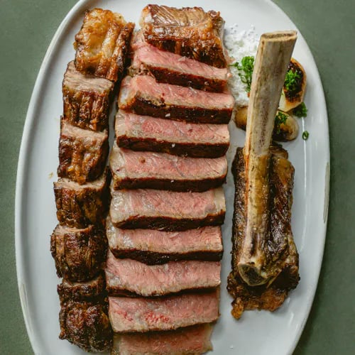 Chef Curtis Stone and his brother Luke honour their grandmother's legacy with this dual-concept venue that operates as a butcher shop by day, then transforms into a Michelin-starred dining room at night. The Art Deco space, anchored by crystal chandeliers and a roaring fireplace, showcases humanely raised meats from local farms—most notably Blackmore Wagyu New York strip grilled over wood fire. House-made charcuterie and a multicourse tasting menu complete the carnivore-focused programme.