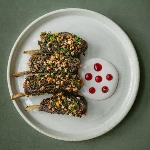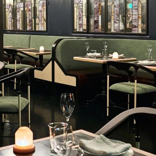 Chef Max Boonthanakit's Michelin-starred kitchen delivers French technique sharpened by Southeast Asian spice, served in a high-energy dining room anchored by an open kitchen. The steak au poivre—caramelized to near-black, sliced thick, pooled in Cognac-peppercorn cream—is the signature move, while rigatoni stuffed with artichoke and Comté offers a quieter, equally confident counterpoint. Creative cocktails like the Saint-Germain round out a polished, unfussy experience.
