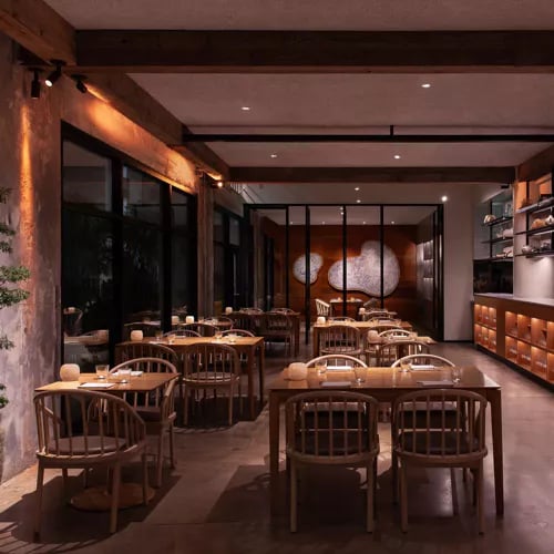 Chef Jonathan Yao's one-Michelin-starred table in the Row DTLA channels his Taiwanese heritage through bold Japanese technique: Dungeness crab with fish maw and crab-shell vinegar, spice-crusted duck in fluffy bao, pig ears ablaze with chili oil. The polished concrete and steel dining room frames an open kitchen where confident seasoning and maximum-impact flavors take center stage, matched by a meticulously crafted cocktail program that includes spirit-free options.