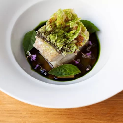 Michael Cimarusti's Hollywood flagship serves a rotating eight-course tasting menu built on wild-caught American seafood—California spiny lobster, Alaskan king salmon, salt-roasted Santa Barbara spot prawns—matched with a rooftop garden that supplies herbs, edible flowers, and honey from Italian hives. Classic technique meets coastal restraint: soft-poached egg with uni, monkfish with shaved black truffle. Three Michelin stars, a Green Star for sustainability, and a roving bar cart that mixes cocktails tableside.