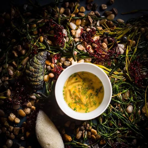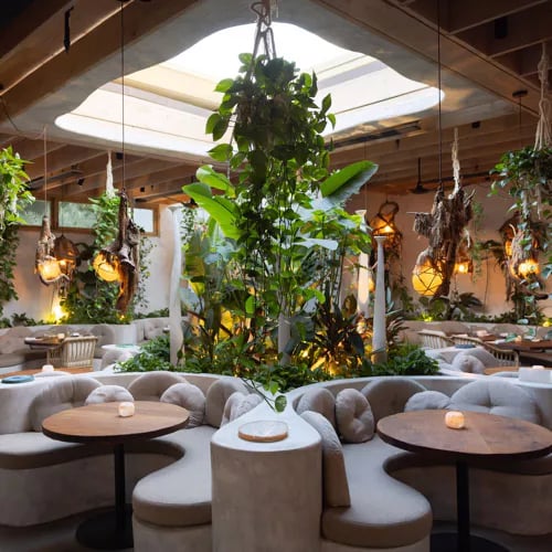 Jordan Kahn's Michelin-starred dining room channels a dreamlike forest with wild greenery and flickering shadows, setting the stage for dishes forged over open flame using zero-waste, sustainably sourced ingredients. Charred yam arrives cloaked in buttery sauce, smoked trout roe, and grilled hazelnuts; honey-grilled scallops share the plate with mustard greens and plantain dumplings in burnt onion jus. Even the drinks—cocktails free of refined sugar, wild-harvested teas—follow the same elemental philosophy.