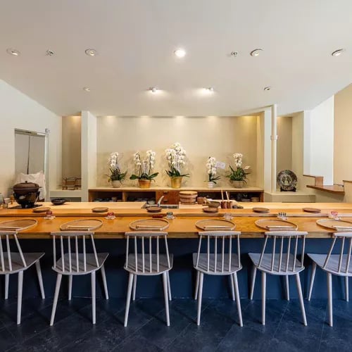 Chef Morihiro Onodera helped shape Los Angeles's sushi identity, and his omakase reflects decades of refined craft. Seafood arrives from Tokyo's Toyosu market, prepared alongside Akitakomachi rice from his native Iwate Prefecture. The format merges cha-kaiseki traditions with classic omakase progression, building toward tuna as the evening's climax. Every dish arrives on pottery the chef shapes himself—an intimate, unhurried counter experience carrying one Michelin star.