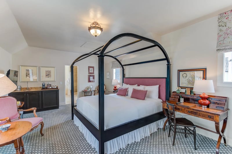 A 24-room Craftsman-style inn on Junipero Street, Le Petit Pali channels the intimacy of a seaside bed-and-breakfast through Palisociety's signature eclectic lens. Vintage furniture and antique artwork fill rooms designed with contemporary color palettes; gas fireplaces ward off coastal fog. Mornings bring local bakery pastries with Champagne, afternoons offer drinks in the garden—a pet-friendly retreat for travelers seeking residential warmth over boutique-hotel formality.