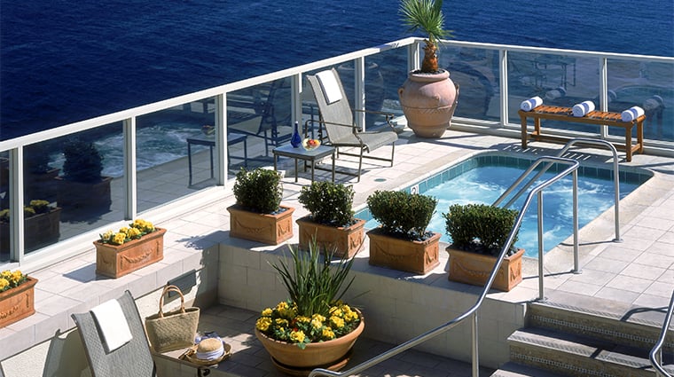 Perched above Cannery Row with Monterey Bay stretched below, Vista Blue Spa draws the Pacific into its nine treatment rooms through ocean-inspired therapies and a glowing salt chamber. The rooftop terrace — two heated whirlpools, sea otters gliding past — serves as the destination's centerpiece, while a couples suite with deep-soaking tubs facing the waves and a private fireplace delivers coastal romance at its most persuasive.
