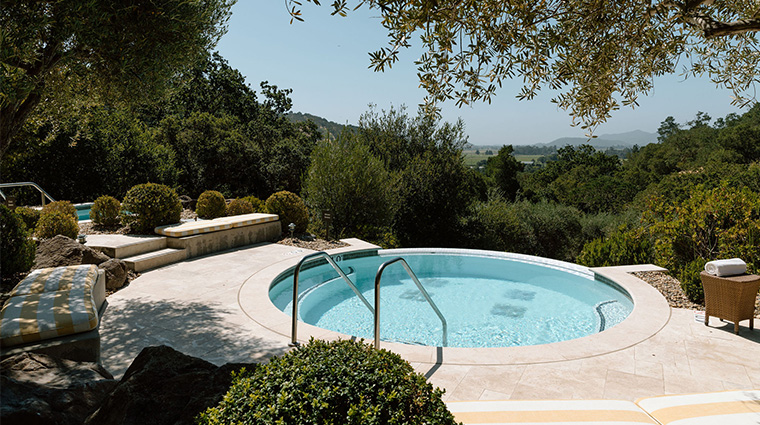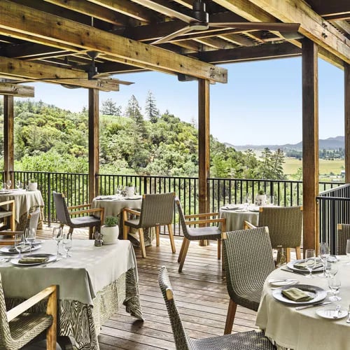 Perched above Rutherford with sweeping views across vineyards and olive groves, this adults-only retreat began as a restaurant so compelling that rooms were added to persuade diners to linger. The Provence-meets-Napa aesthetic flows through fifty suites opening onto private terraces, while the restaurant's 15,000-bottle cellar and terraced pool deck, full-service spa with sauna and steam rooms make departure feel almost unreasonable.
