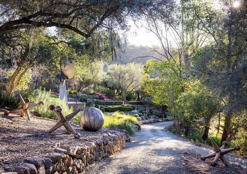 Rammed-earth walls and 100,000 square feet of salvaged wood give Bardessono its striking sustainability credentials—one of just fourteen LEED Platinum hotels nationwide. Across five landscaped acres in Yountville, olive groves and contemporary sculptures frame 62 suites designed as private spas, each equipped for in-room treatments. Lucy Restaurant sources ingredients from the property's own garden, while the wine collection draws from an on-site organic vineyard.