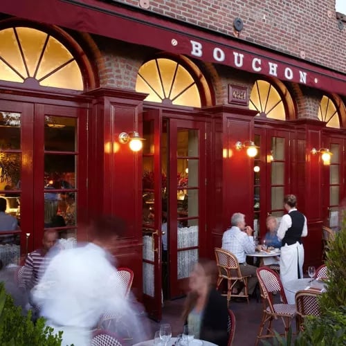 Thomas Keller's Bouchon channels a Parisian bistro with exacting detail—red velvet banquettes, marble tabletops, polished brass fixtures, and mosaic floors that feel lifted from the Left Bank. The adjacent bakery supplies exceptional pain d'epi, while the kitchen delivers classics like crispy roasted chicken with corn, bacon lardons, and oyster mushrooms. A refined lemon tart caps meals in this perpetually buzzing Yountville address.