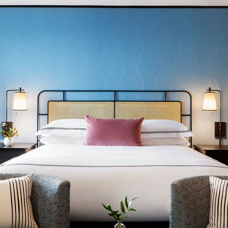 Jewel-toned marble bathrooms and eccentrically appointed rooms give this 67-room Warehouse District property the feel of staying with a mysteriously wealthy friend. The guests-only Living Room lounge creates members-club intimacy, while a private entrance connects to Salon Salon, the Parisian cocktail bar next door. Pet-friendly throughout, with a rooftop pool and terrace bar for unwinding above the city.