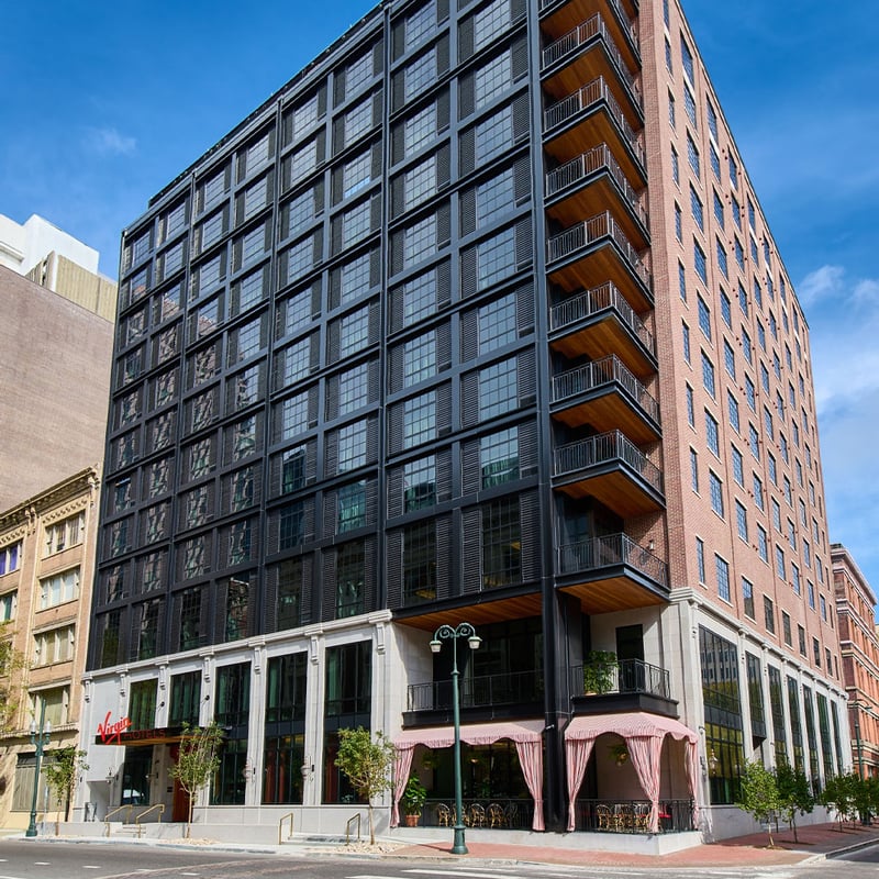 Local architects shaped Virgin's mid-century aesthetic to fit the Central Business District, producing interiors that swing between European sophistication and sub-tropical color bursts—a visual echo of New Orleans itself. The rooftop pool and terrace bar draw a sociable crowd, while the Shag Room lounge keeps the energy flowing at ground level. Pet-friendly rooms and a 24-hour gym round out the offer for style-conscious travelers who prefer their hotels lively.