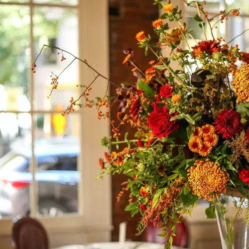A late-1800s building houses three dining rooms, each with its own character—carpeted wood floors, white tablecloths, eclectic art. The kitchen leans heavily on Louisiana seafood: crabcakes arrive golden and crisp with Creole sauce, while grilled redfish comes topped with jumbo lump crab in citrus beurre blanc. The bread pudding, warm with blueberry compote and bourbon-spiked white chocolate sauce, delivers a proper Southern finale.