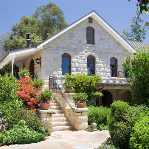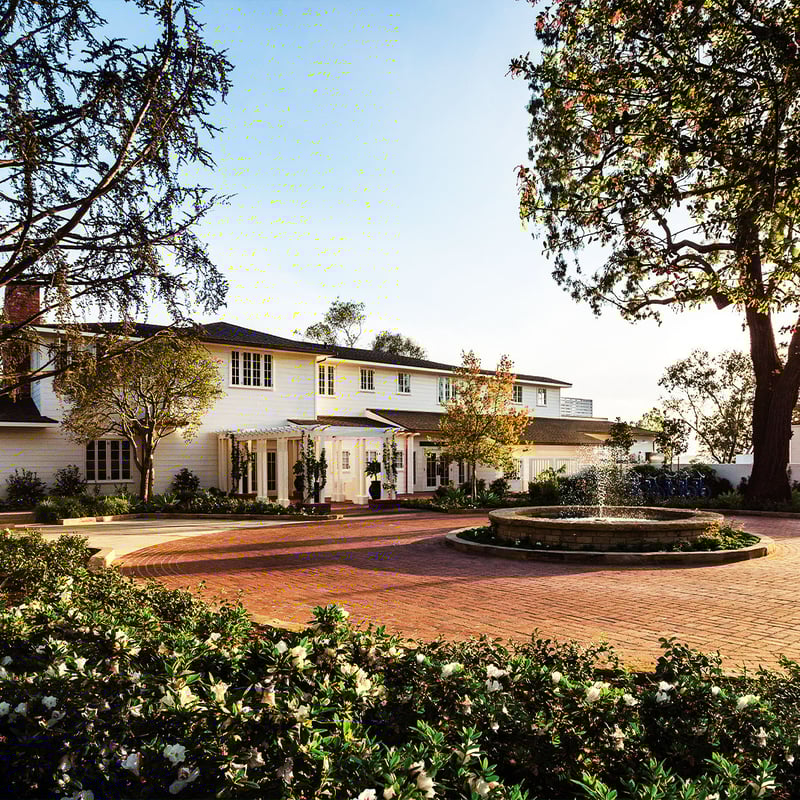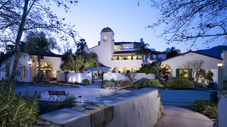 Spanish Revival architecture anchors this adults-only retreat in Ojai Valley, where a Mission-style archway and original stone fireplace set the tone. The 50 rooms span the main building, private bungalows with garden patios, and the newer Sycamore House, all dressed in earthy tones and local artworks. La Cocina delivers California-Mexican fare alongside agave spirits, while the pool gazes toward the Topa Topa mountains.