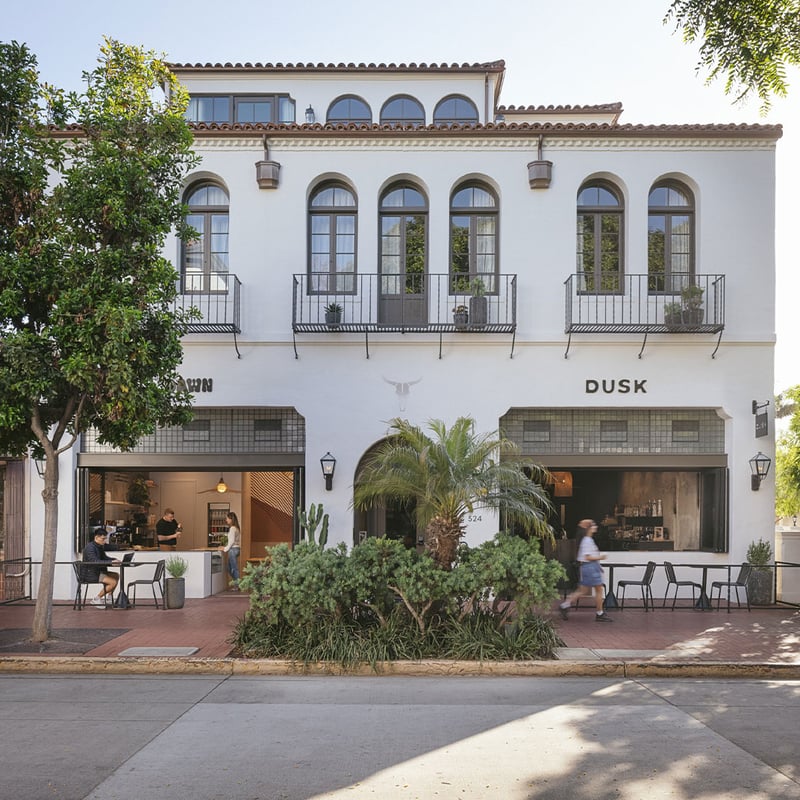 Behind a restored 1920s Spanish façade on State Street, Drift surprises with pared-back interiors where clean lines meet warm, tactile materials—wood, linen, stone. The 45-room property keeps things intimate and effortlessly cool. Mornings start at Dawn, a surf-culture coffee bar; evenings drift to Dusk for oysters, ceviche, and agave spirits. Wine country tours depart nearby, and the beach lies within a short walk.