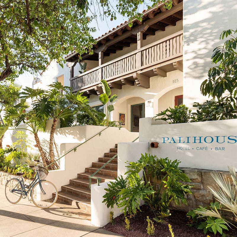 A courtyard hotel of just 24 rooms, Palihouse Santa Barbara wraps its guests in a aesthetic the brand calls "vintage preppy meets American Riviera"—think tweedy textures softened by coastal light. Suites feature fireplaces, private patios, Smeg refrigerators, and Diptyque amenities. The Mediterranean garden hosts an all-day café pouring local wines, while complimentary bikes and proximity to Santa Ynez wineries suit active, oenophile-minded travelers. Dogs welcome.
