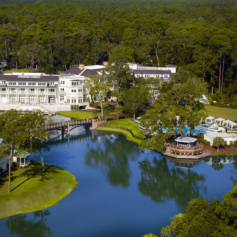 A former hunting lodge transformed into fifty clapboard cottages along the May River, this Lowcountry retreat channels authentic Southern architecture with screened porches and pine-floored interiors. The 13,000-square-foot spa offers Tata Harper treatments, while the Audubon-certified Jack Nicklaus course shares fairways with resident bald eagles. A Cadillac partnership lets guests explore Savannah in style—ideal for families and golfers seeking seclusion between two coastal destinations.