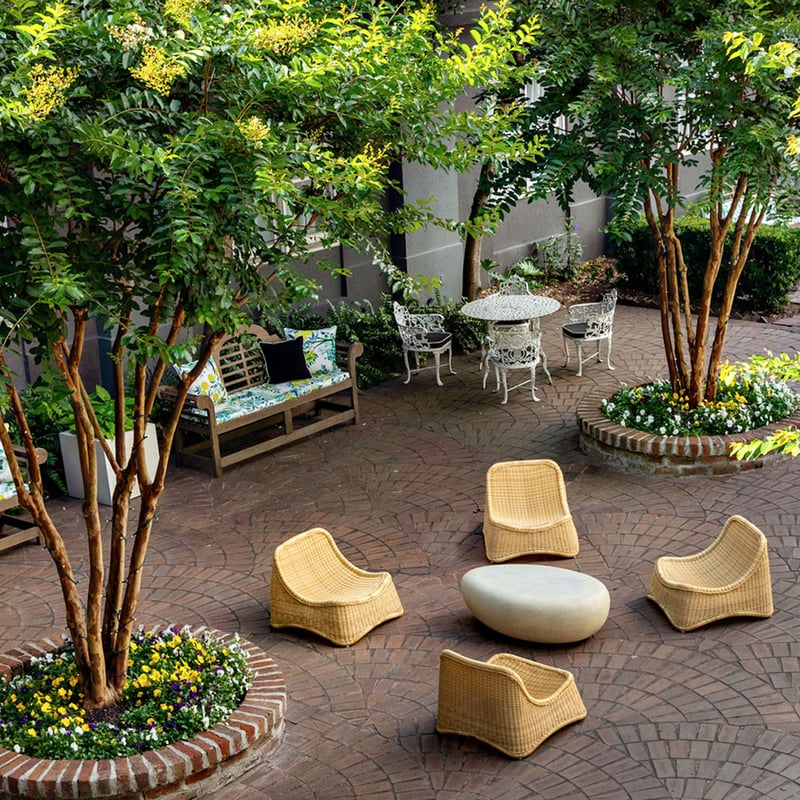 A converted loft building steps from the river walk, the Andaz brings contemporary edge to historic Savannah. Rooms pop with bold color—scarlet chairs, leopard-print sofas—against a cool urban backdrop. Daily wine tastings and custom-roasted coffee punctuate the stay, while the restaurant delivers modern Southern cooking with local flair. An outdoor pool, pet-friendly policy, and nearby golf round out the appeal for travelers seeking style without stuffiness.