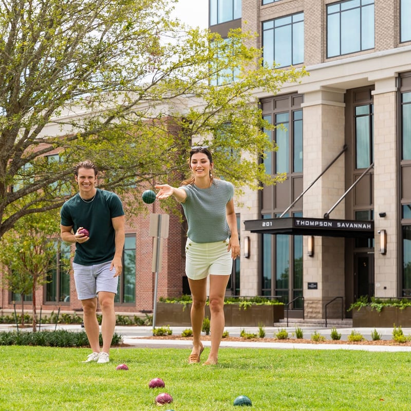 A New York-rooted boutique brand finds its Southern footing in Savannah's revitalized Eastern Wharf district. The Thompson's 193 rooms channel mid-century modern design softened by local artworks and warm regional character. Days drift between the pool deck's in-water loungers and Bar Julian's rooftop panoramas over the river, while Fleeting restaurant anchors the experience with seasonal, locally sourced cooking that shifts with the calendar.